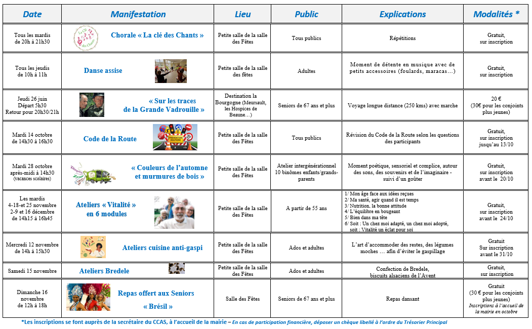 *Les inscriptions se font auprès de la secrétaire du CCAS, à l’accueil de la mairie - Adresse mail dédiée : ccas@fleville.fr